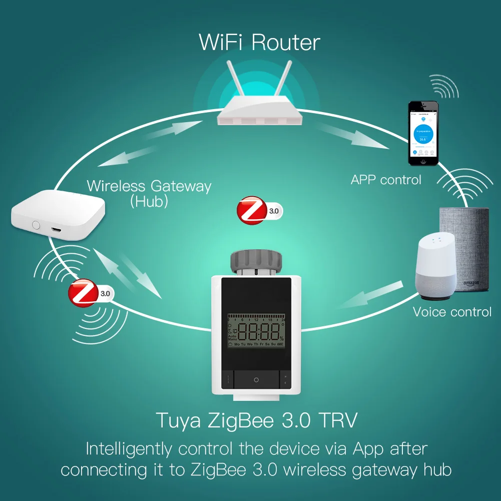 Best Price Tuya ZigBee 3.0 Smart Thermostatic Radiator Valve Home Thermostat Heater TRV 2MQTT Setup with Alexa Google home Smart Life