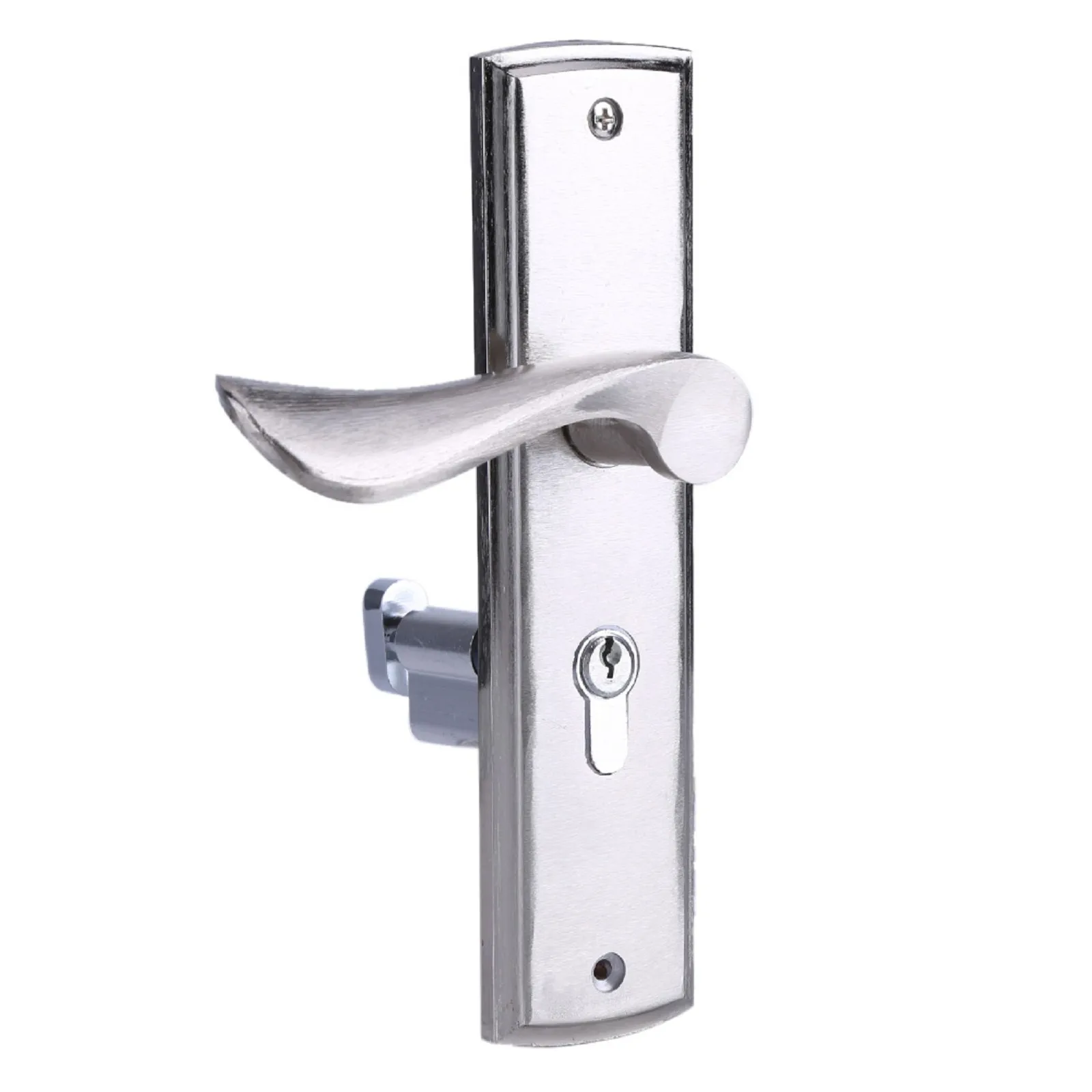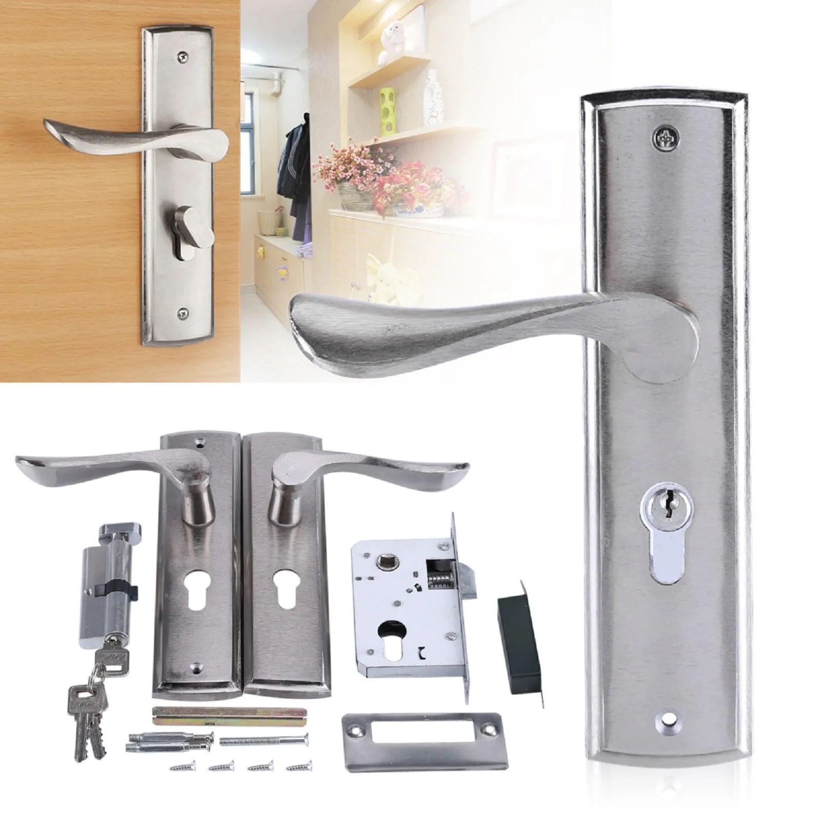 Top Seller 1 Set Silver Door Handle Lock Cylinder Front Back Lever Latch Home Security W/ Keys Solid Square Tongue Interior Door Lock