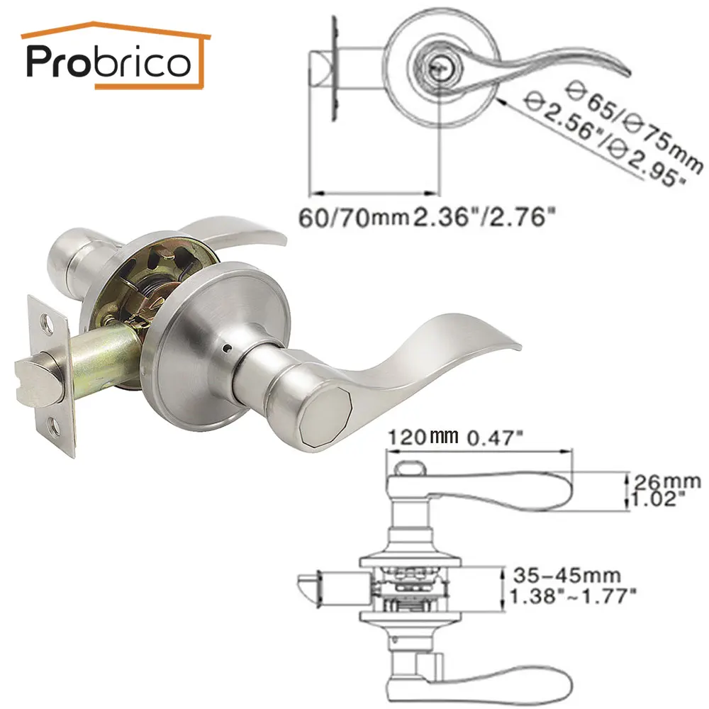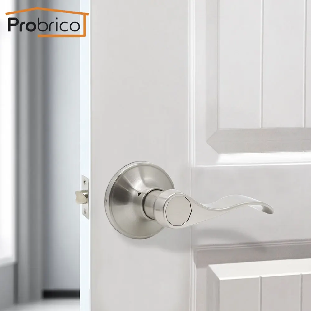 Discount Probrico door handles for Interior doors Front Back Levers with latch lock cylinder Bedroom Bathroom gate locks dummy handle set