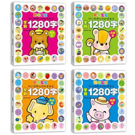 Cheap 4pcs/set Early childhood awareness education books learn 1280 character words with pin yin and colorful pictures pack of 4