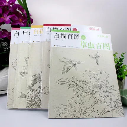 Special Product 5 Book /set Chinese traditional Fine Line gongbi biao miao painting drawing art book for Peony, lotus, bird, fish and grass worm