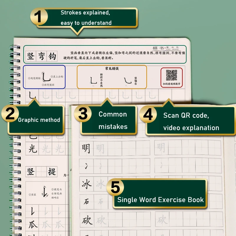Limited 5Books/set Chinese hanzi Calligraphy Adult Copybook Textbook Exercise Book Art Writing Practice Copybook 3D Groove Can Be Reused