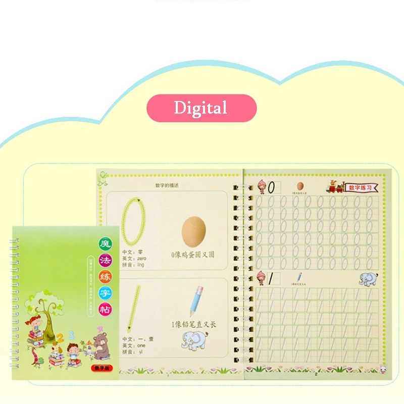 Get Children Kids Children Practice Copybook Kindergarten Number / Letter / pinyin Magic Groove Magic Copybook 3-8 ages 6 pcs/set