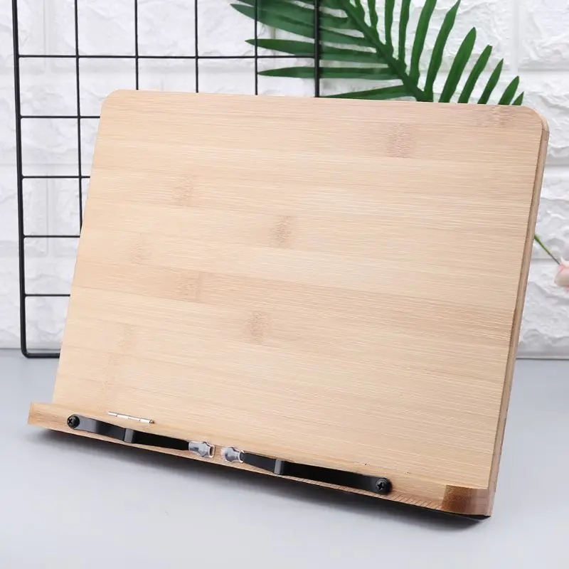 Get Bamboo Adjustable Reading Book Holder Tray Page Paper Clips Foldable Tablet Cookbook Book Stand Holder
