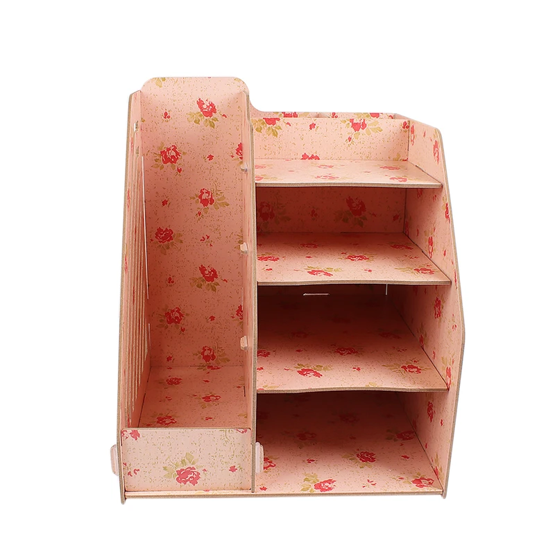 Best Coloffice Creative1PC pink wooden Bookends Multifunctional Office desktop storage box Data rack school office organizer supplies