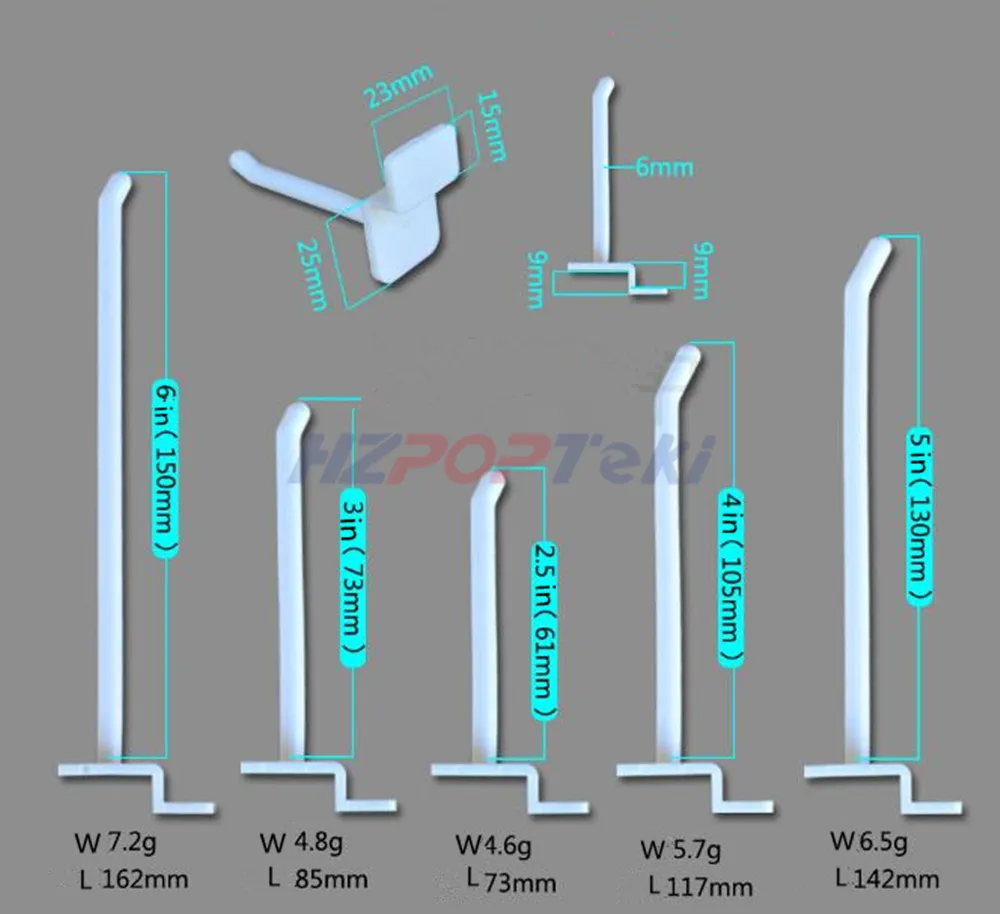 Best Plastic Products Package Display Hanging Hanger Hooks in White on Universal Plate for Supermarket Storage Rack Shelf 1000pcs