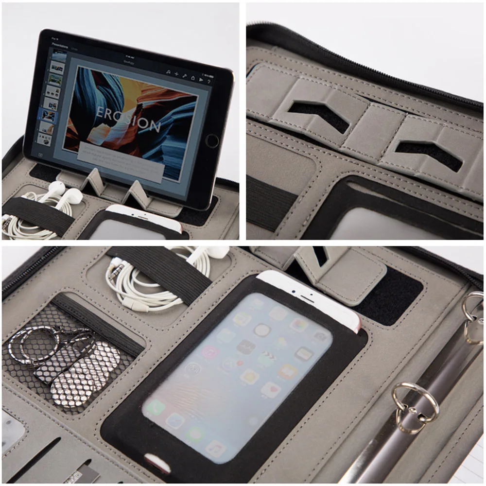 Special Product A4 Fichario Binder Document File Folder Ring Case Manager Padfolio Business Office Organizer Cabinet Holder Zipper Briefcase Bag