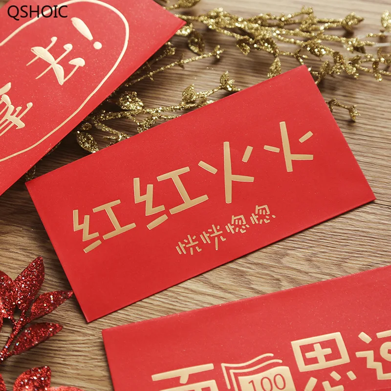 New 60PCS/SET New Year's Red Envelope Chinese Character Interesting Text Red Envelopes Cute