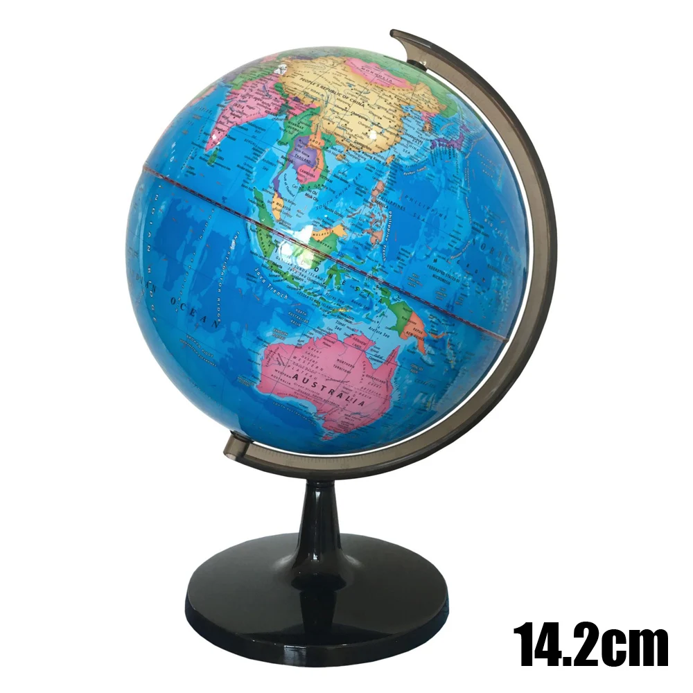 Get 14.2cm PVC World Earth Globe Map Geography Educational Toy With Stand Home Office Gift office gadgets Plastic Teaching globe
