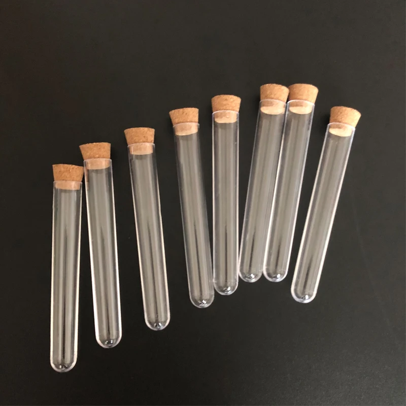 Get 200pcs/pack 15*100mm Transparent Plastic Test tube with Cork Stopper U-shape bottom for Laboratory or Wedding favours